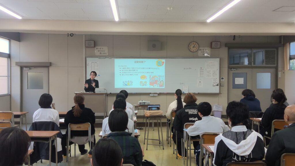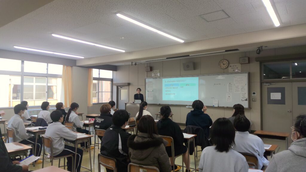 1月20日(火)6限のLTにて通信制の進路講話を行いました。進路指導主事から卒業後の進路(進学・就職)・今行動すべきこと等のお話があり、みんな真剣な様子で聞いていました。1年生も終わりに近づいているこの時期に、将来について具体的に考え調べること・様々なことに興味を持って挑戦することが少しずつできるようになるといいですね。