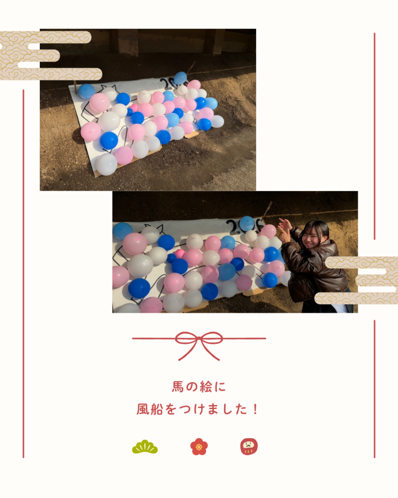 また、馬の絵に風船をつけて狙うという余興も行い、緊張感の中にも笑顔が見える、充実した時間となりました。
