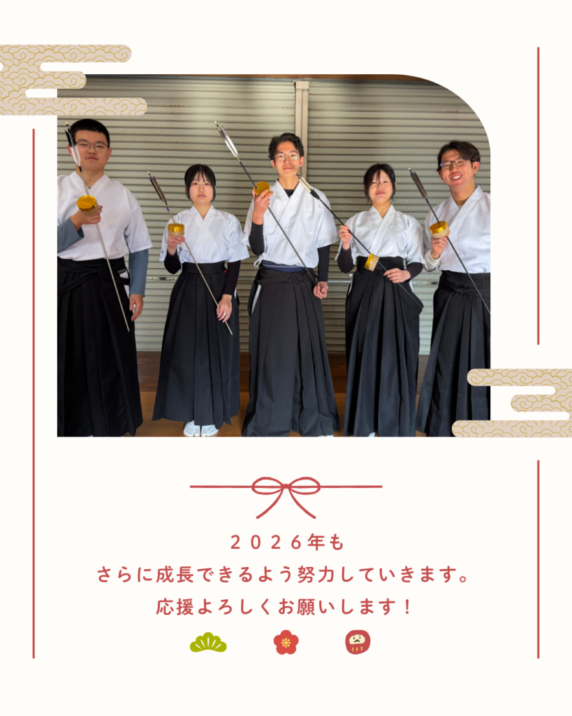 2026年も、弓道部一同さらに成長できるよう努力していきます。 応援よろしくお願いします!