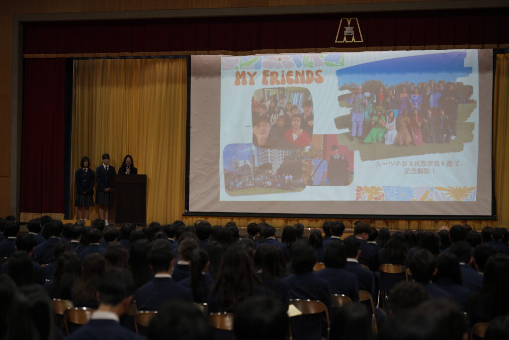 さらに、オーストラリア研修に参加した生徒による報告会も行われ、現地での学びや経験が生き生きと語られました。国際理解教育の成果を感じられる貴重な発表となりました。